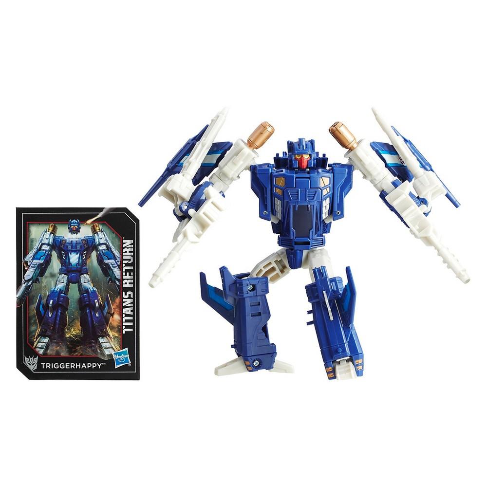 Transformers Generations Titans Return Deluxe Class figures are 5.5-inch scale figures that come with a Titan Master figure. The Titan Master figure becomes the head of the Deluxe Class figure. It also works with Deluxe Class, Voyager Class, and Leader Class Titans Return figures (each sold separately). In Titans Return, the Autobots and Decepticons unite with Titan Masters, small bots that carry a power boost. Titan Masters are key to controlling an ancient race of warriors the size of cities: the Titans....