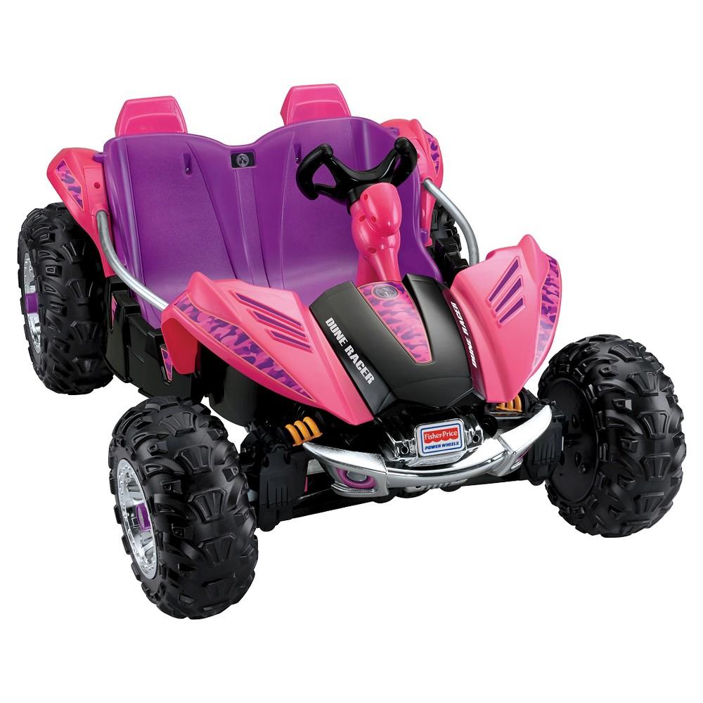 Dimensions: 25L x 46W x 15H in.Flashy dune buggy for their first off-road adventureSteel frame, bucket seats and chrome accents12-volt rechargeable battery with charger2.5 and 5-mph, max. going forward; 2.5-mph max. in reverseAges 3 and aboveMaximum Weight: 130 lbs.. If you want to tell them that the tires on the Fisher-Price Power Wheels Dune Racer ATV Battery Powered Riding Toy - Purple aren't designed to withstand your neighbor's flower beds, we won't contradict you. But they'll find out soon enough tha...