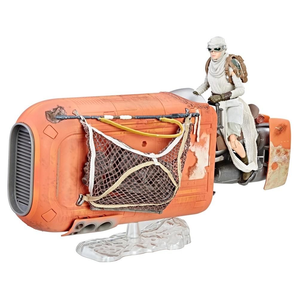 Kids and fans alike can imagine the biggest battles and missions in the Star Wars saga with new, 6-inch scale vehicles from Star Wars The Black Series! With exquisite features and decoration, this series embodies the quality and realism that Star Wars devotees love. Rey is a resilient survivor, a scavenger toughened by a lifetime of dealing with the cutthroats of the harsh desert world of Jakku. For quick transportation across the junk-strewn dunes of Jakku, Rey relies on her old salvaged speeder. Crafted ...
