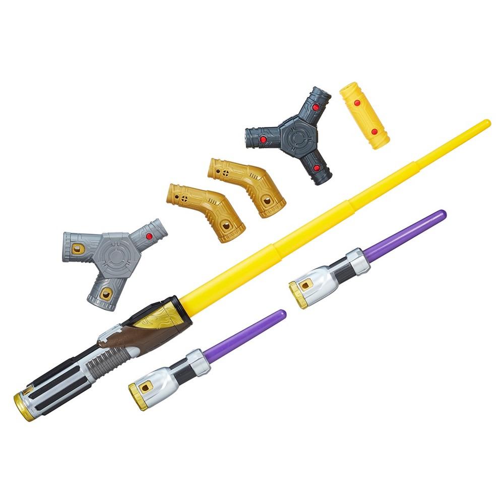 Launch into action and adventure in the world of Star Wars! Discover the exciting stories of good versus evil in a universe of heroes, villains, and aliens. Imagine joining the Jedi Order as a protector of peace and justice in the Galactic Republic with this Star Wars Bladebuilders Jedi Knight Lightsaber! Imagine completing Jedi training and joining the Jedi Order with this yellow-bladed Jedi Knight Lightsaber from Star Wars Bladebuilders! Lightsaber features more than 50 combina...