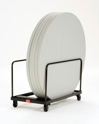 Dark brown powder-coated steel frame; Rolls on 4 casters, 2 swivel and 2 stationary for ease of handling; 4-in rubber casters for added durability; 2 tubular handles for easy handling; Stores 8 tables vertically; Can stack 48-in or 60-in laminate or plastic folding tables; Handle included for easy handling of unit