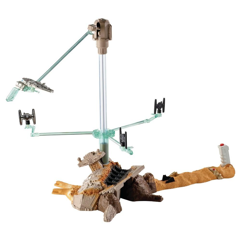 Two of boys???? favorite brands -- Hot Wheels and Star Wars -- have joined forces! Recreate the high-flying, launching and blasting starship action of Star Wars: The Force Awakens with this play set inspired by one of the movie????s most exciting scenes! Play as the light side or the dark side in the Hot Wheels?? Star Wars Escape from Jakku play set. Press the controller to pilot the ship and activate battle sounds that amp up the action. With sound modes, you can choose your side and take out th