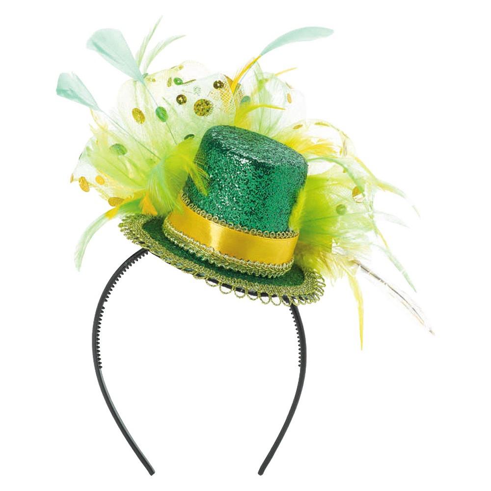 Give your fave hairdo a funky new accent with the St. Patrick's Day Mini Feathered Top Hat Headband. This chic headband comes with frills and other decorative ornaments that'll give your outfit a fun touch up. From cascading curls to silky straight hair, rock any look you want in style! Plus, it's great for keeping away those loose strands while you're having fun. Size: Osfm. Color: Green. Gender: Female.