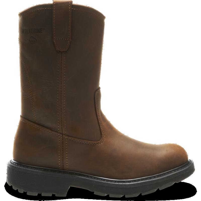 Take care of business in the men's Wellington mid-calf work boot by Wolverine . This full-grain leather boot features a slip- and oil-resistant lugged outsole for superior traction and stability, which helps prevent accidents on the work site. Pull tabs at the top of the shaft make it easy to pull on as you're headed out the door. Size: 8. Color: Brown. Gender: Male. Age Group: Adult.