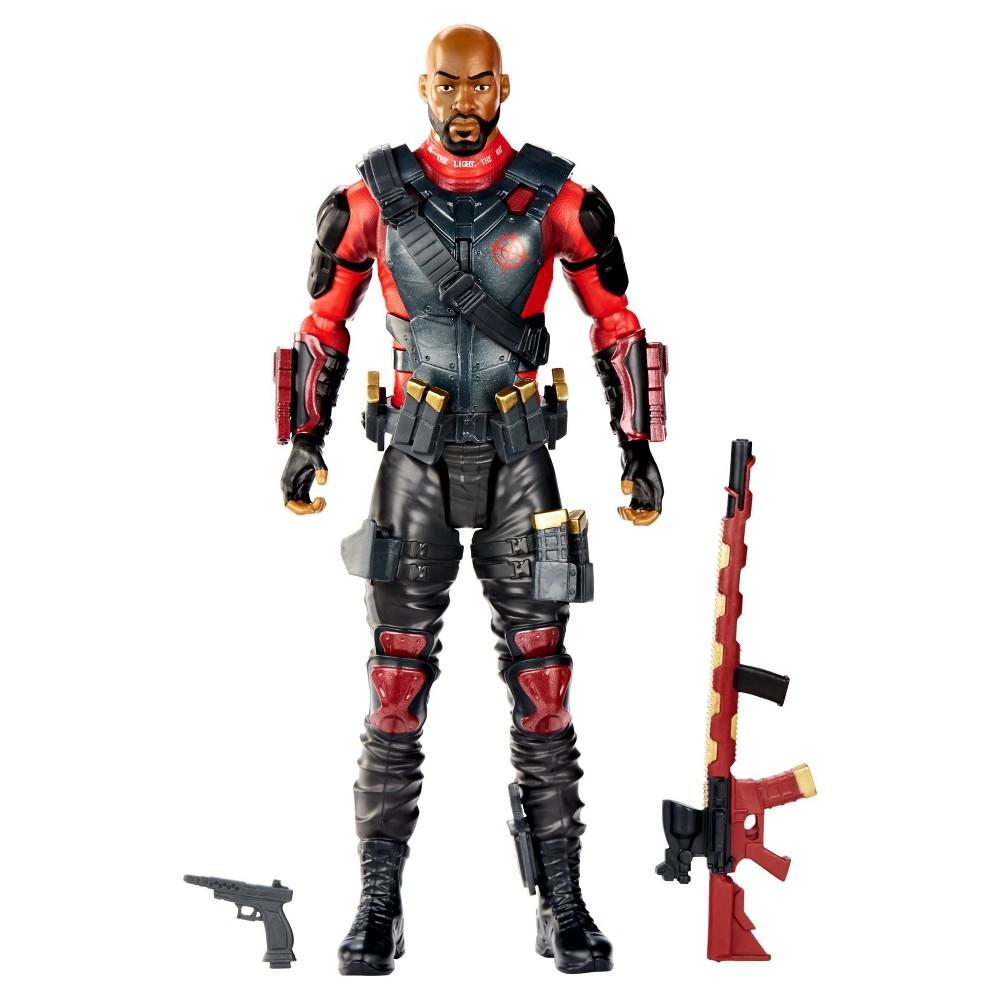 DC Comics Multiverse Suicide Squad Deadshot Figure:Richly authenticDeadshot toy is based on the new DC Comics Suicide Squad movieFeatures life-like sculpting, fine details and authentic movie stylingDeadshot action figure comes in his signature black and red costume with the words, "I am the light, the way" written on its necklineHas 12 points of articulation to pose in various positionsComplement this Deadshot toy with the other members of the Suicide SquadIncludes a pistol and a rifle to hit right on the target every timeFor ages 14 years and up