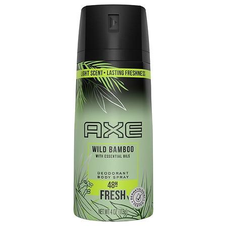 AXE Light Scents Wild Bamboo Deodorant Body Spray for Men 4 ozNew AXE Light Scents Deodorant Body Spray with essential oils and dermatologist testedA crisp, clean body spray scent with a tropical blend of green bamboo and pink grapefruitThis body spray is strong enough to keep you fresh for 48 hours. Light enough for you to move closer.This deodorant for men is made with essential oilsThis deodorant body spray for men is dermatologist testedUse AXE deodorant body spray for men anytime, smell great all the time