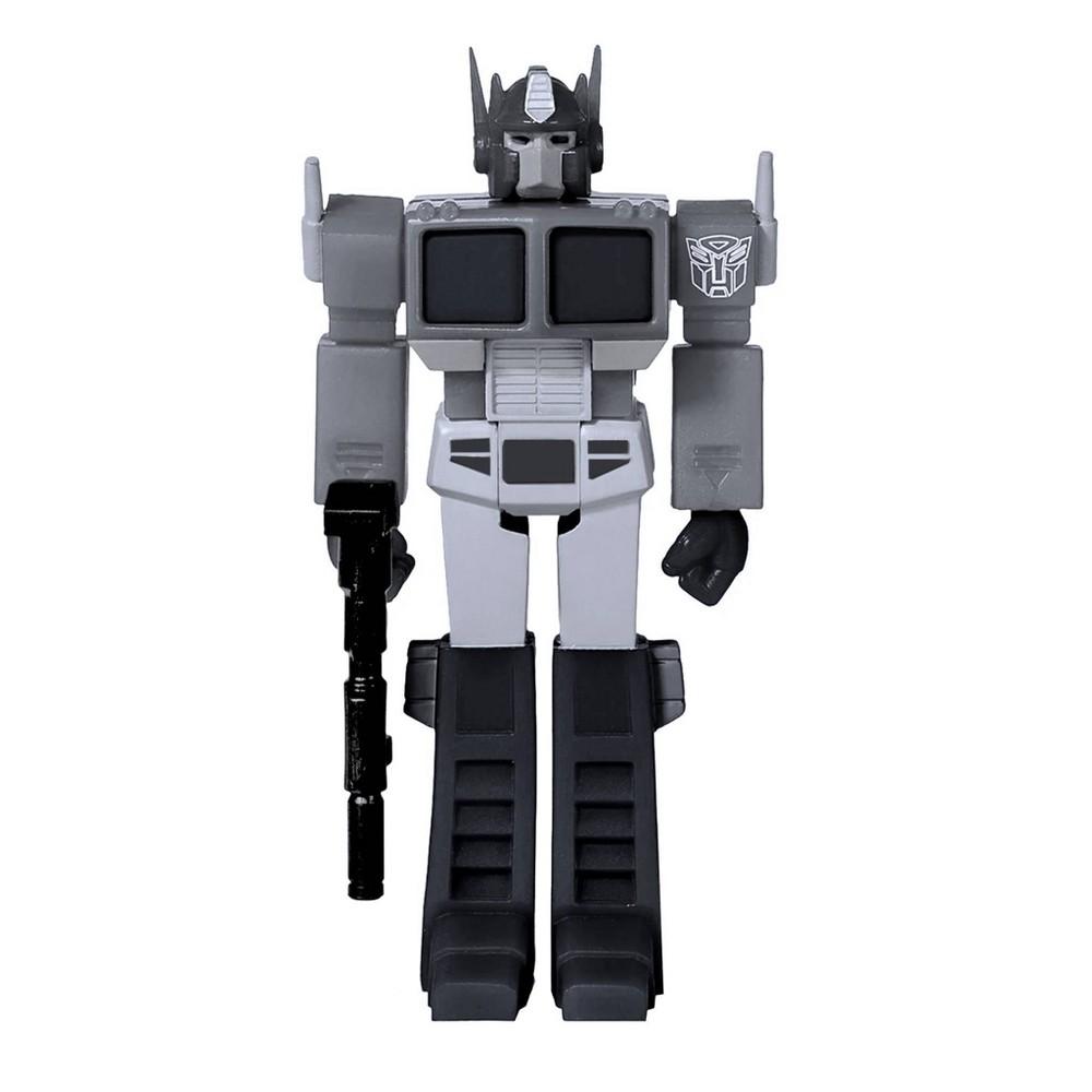 "Robots in disguise!" The Super7 x Transformers collaboration expands as the Autobots and Decepticons join the 3.75-inch ReAction Figure world! Collect them all! Transformers collectible figures available in various styles and characters. Optimus Prime, leader of the Autobots, comes in a special re-color version with Ion Blaster accessory. Figure does not convert.