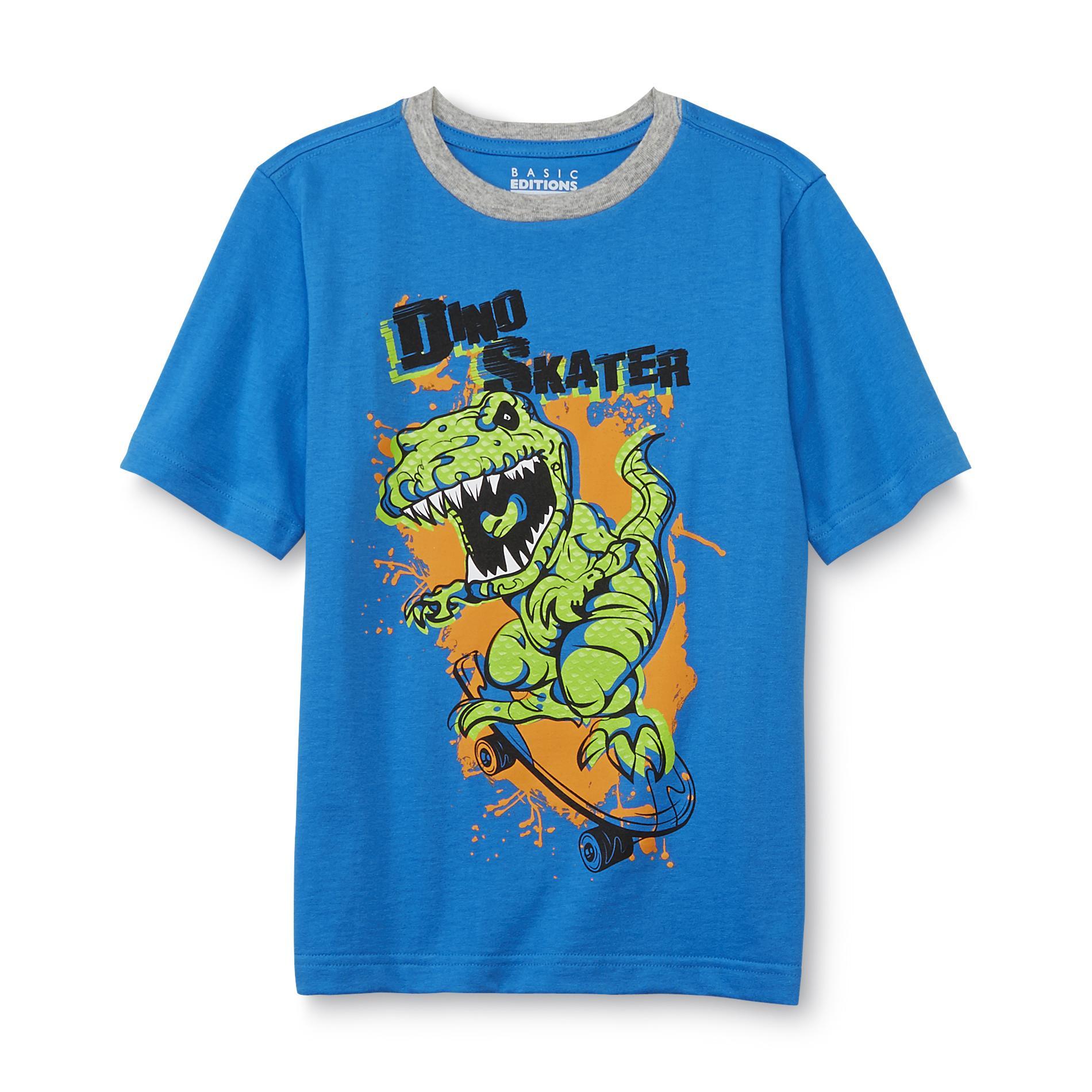 He'll be set for school days and play days alike when he's wearing this Basic Editions boy's graphic T-shirt. This short-sleeve tee features a screen-print design with an awesome T. rex on a skateboard that reads, Dino Skater. Color: Brilliant Blue.