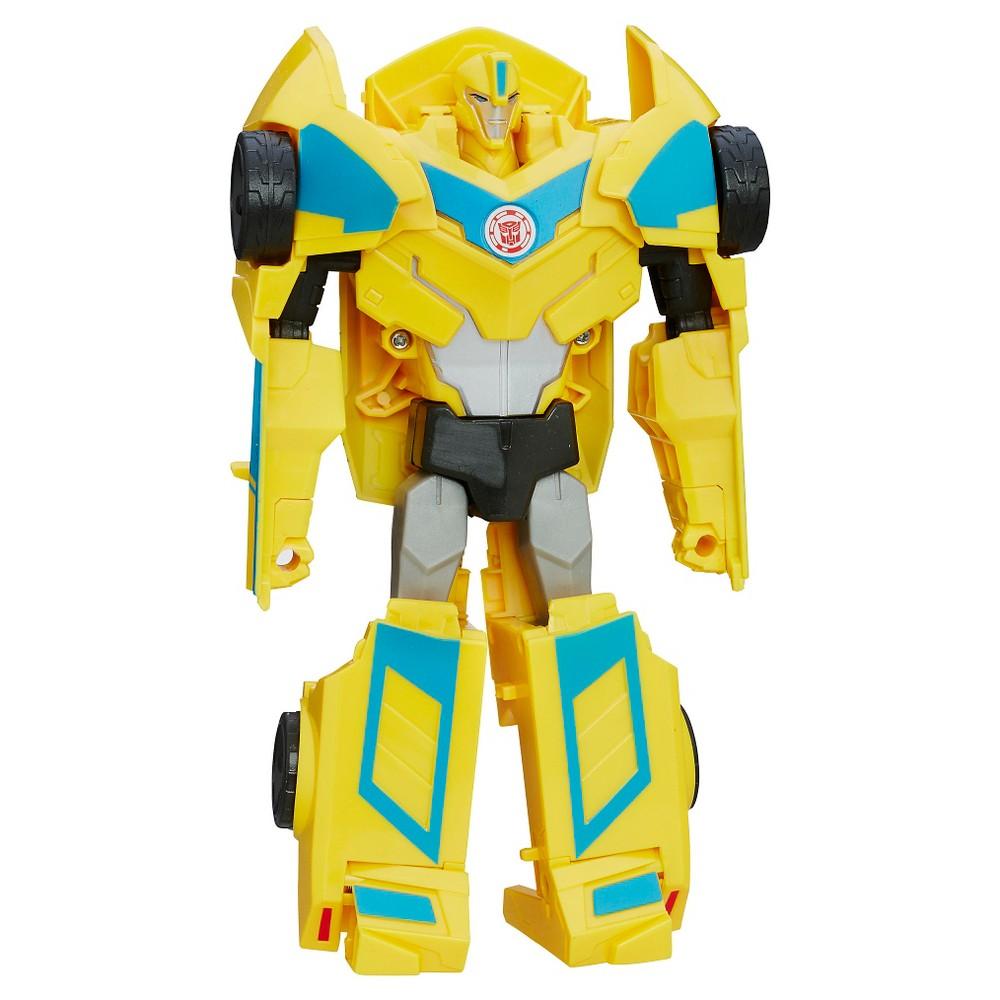 In the Transformers: Robots in Disguise animated series, Bumblebee leads a team of Autobots. Their mission: capture Decepticons that are loose on Earth … and do it without being discovered. Join Bumblebee and his team and help them chase down Decepticons with Transformers: Robots in Disguise figures. This Energon Boost Bumblebee figure changes between modes in 3 quick steps.They've done it on TV- Transformers robots moving at top speed, then magically shifting between modes. One moment they're high-performance vehicles, and the next moment they're towering robots charging into battle. Transformers 3-Step Changers bring home some of the magic of conversion with figures that kids switch between modes in 3 smooth steps. Choose from a variety of different conversion styles, designed to create a "Wow!" moment. When Bumblebee wants to hit the road with extra speed or battle with extra strength, he kicks into overdrive in Energon Boost mode. The Decepticons don't stand a chance! This 3-Step Changers Energon Boost