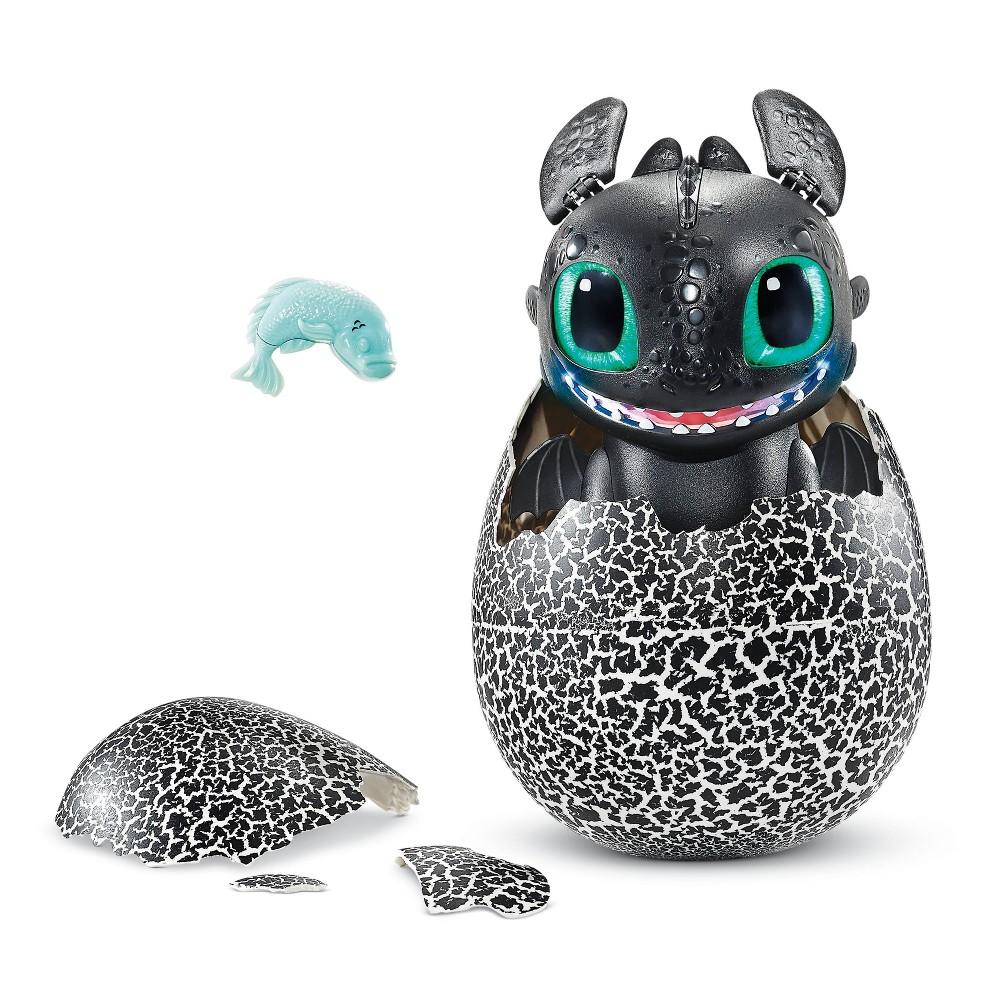 Hatch and train your very own baby dragon Toothless! Your favorite dragon from How to Train Your Dragon: The Hidden World comes to life with light-up eyes movements and interactive sounds! Become the best of friends with Hatching Toothless as you teach him how to fly and plasma blast feed him and play games with him! To encourage baby Toothless to hatch rock his egg back and forth to hear him growl; tap to hear him tap back; and shake and tilt the egg to get him aggravated ? once he?s agitated enough he?ll be ready to hatch! Outside of his egg Toothless is ready for fun and adventure. Establish your rider?s bond with baby Toothless by placing your hands on his head then teach him how to fly and plasma blast! As you guide Toothless through the sky his ears move and wings flap and he lets out dragon roars! Charge up the plasma blast by holding his belly and let go to release ? his mouth glows as he charges and blasts. If Hatching Toothless gets hungry feed him a snack with his fish accessory. This pl