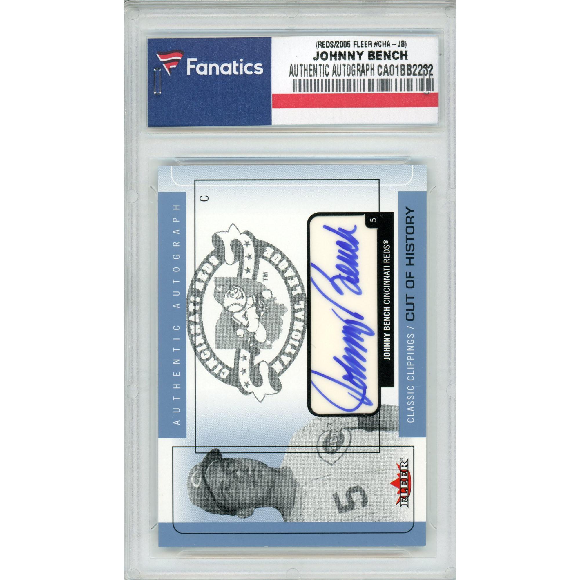 | Item name: | Johnny Bench Cincinnati Reds Autographed 2005 Fleer #CHA-JB Trading Card - Fleer |