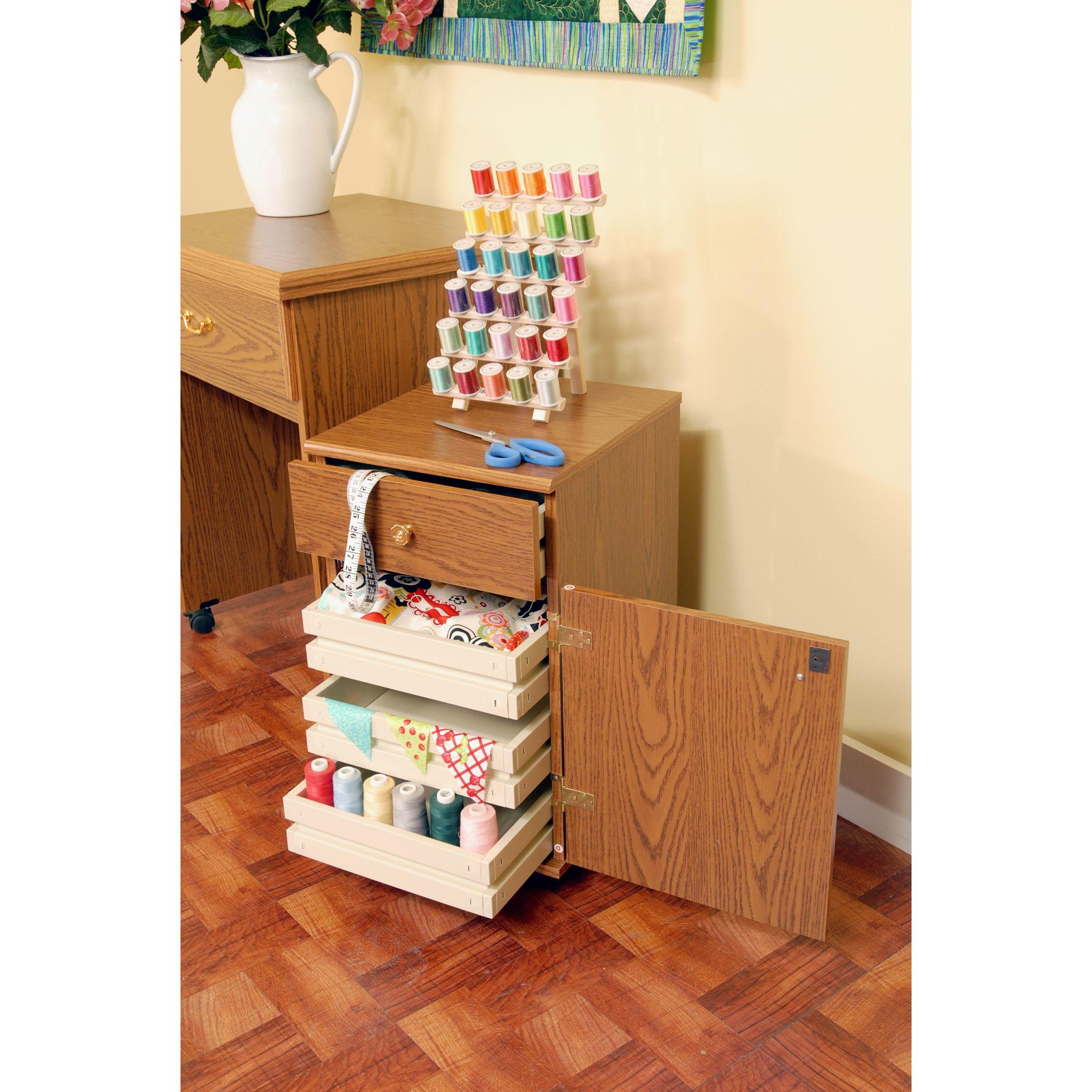 Arrow Suzi Sidekick Storage Cabinet gives sewers a way to bring organization and style to help minimize clutter. Organize notions and fabric between all four easy glide drawers. Match your existing Arrow sewing cabinets or existing d?cor with one of 6 finishes.