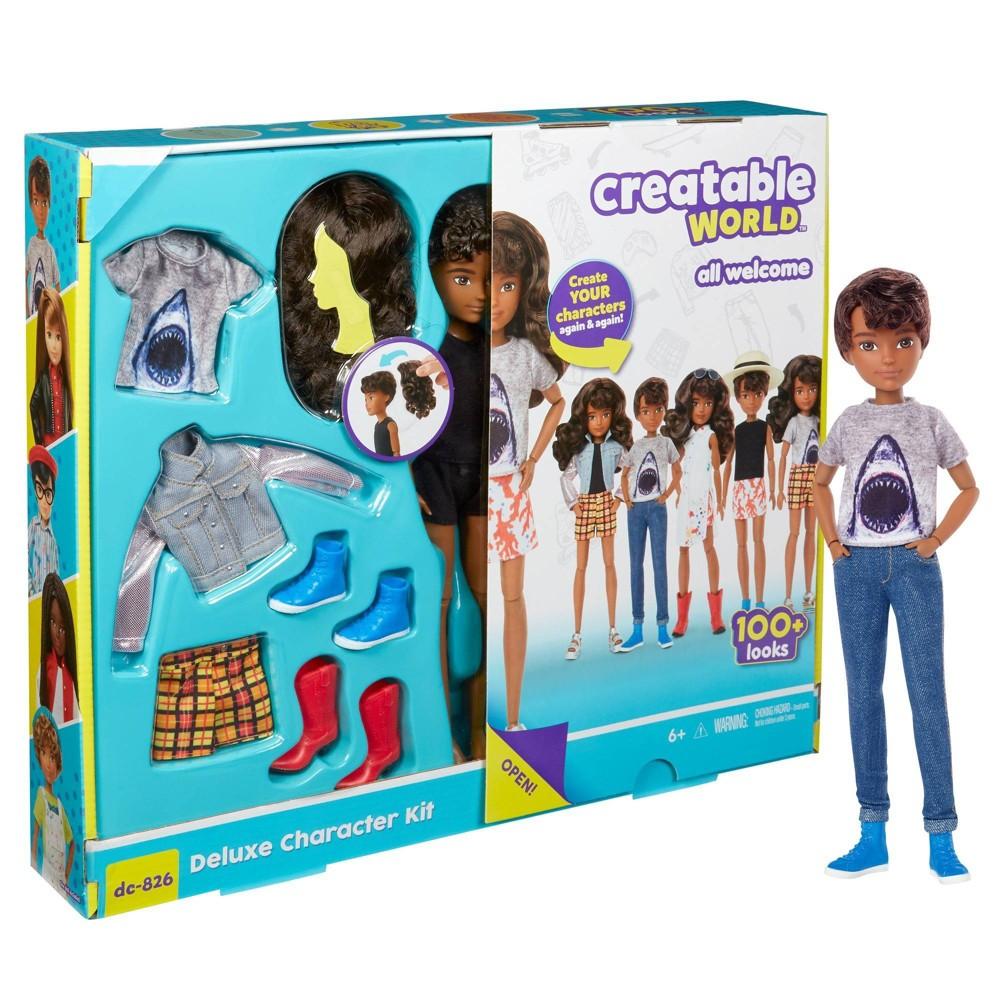 Creatable World inspires all kids to get creative with doll play -Deluxe Character Kits provide a blank canvas along with the pieces to create unique characters over and over again! the 11-inch (29.94-cm) doll wears a tank and shorts has a short haircut and comes with six items of clothing three pairs of shoes two additional accessories and a long-haired wig -all versatile pieces that give kids the freedom to make their characters whoever they want them to be. Dress the doll one way for one character then switch it up for someone completely different! the clothing is straight of f the playground and authentic details keep it even more real. the wig is easy to take on and of f -kids can switch long hair for short hair then back again. Add a skirt pants or use both. Accessorize...or don t. Creatable World doll kits give all kids the ability to make and remake characters they love. With so many choices the fun is never-ending! Collect other doll kits for even more options and creative possibilities (ea