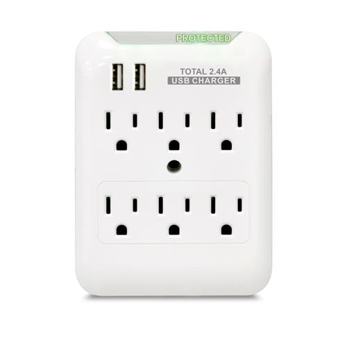 RND Charging station with 6 AC Outlets and 2 USB ports[2.4 Amps) with Surge Protector for iPhone, iPad, Samsung Galaxy, Tablets & More [white)