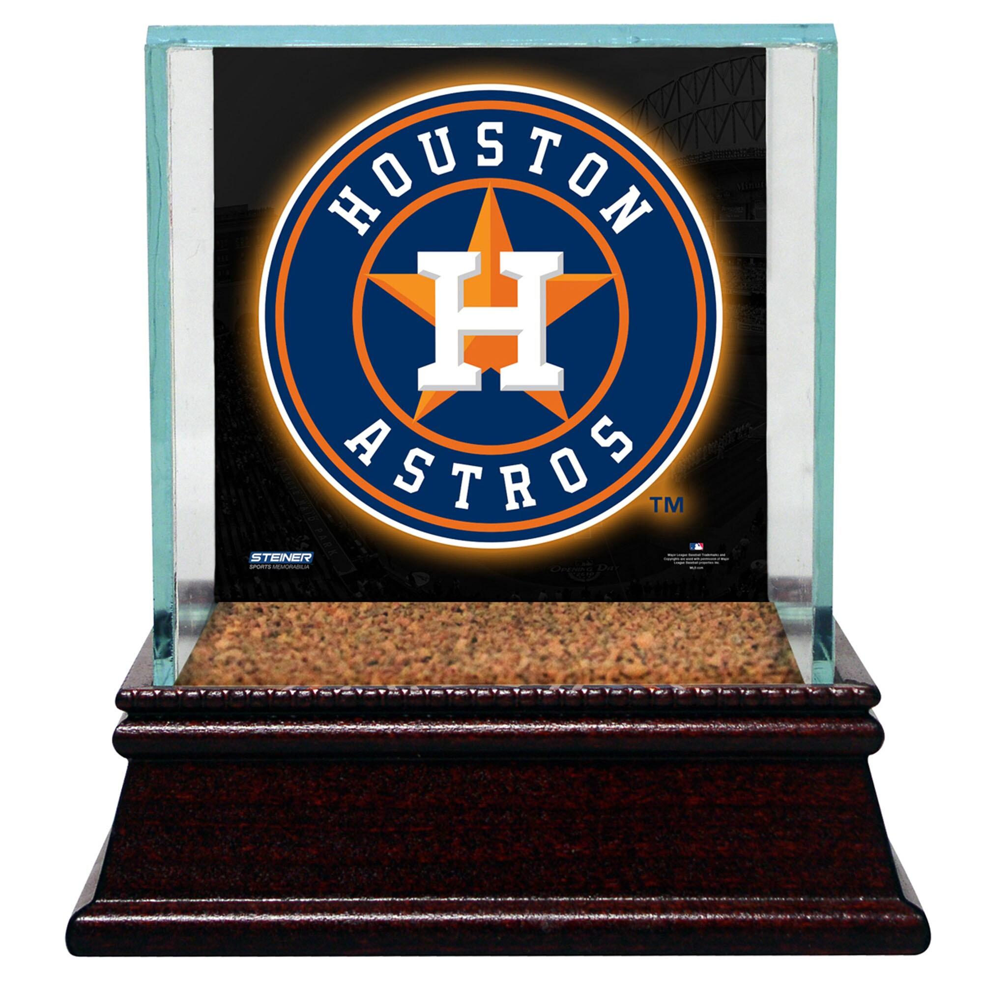 Houston Astros Glass Single Baseball Case with Team Logo Background and Authenti