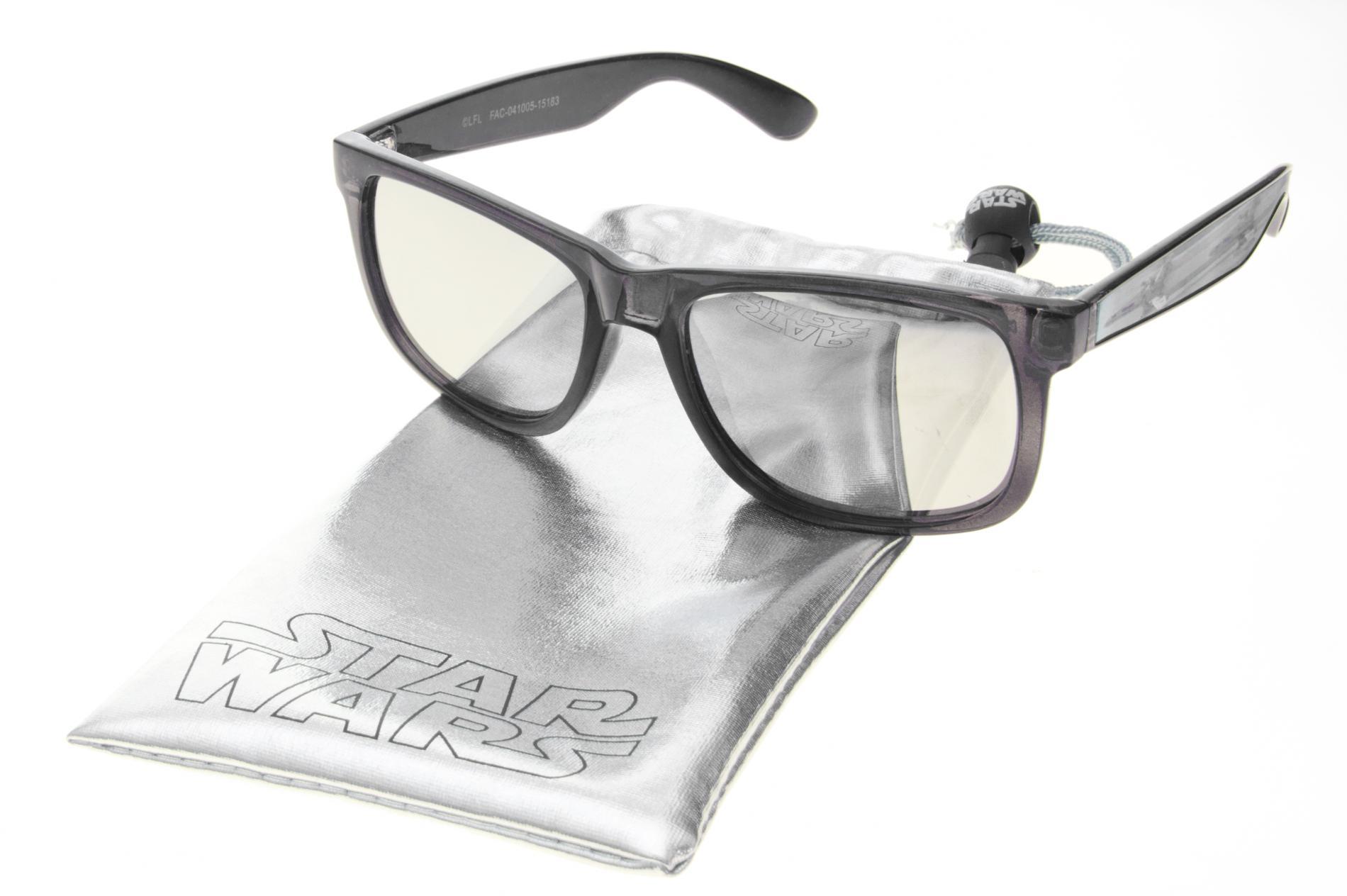 You're geared up to side with the Rebel Alliance in these men's Star Wars sunglasses . With lightly tinted lenses set in thick, black plastic frames, these retro sunglasses add a epic finishing touch with a design inspired by the T-65 X-Wing Starfighter. Included with these sunglasses is a branded metallic drawstring pouch for convenient carrying. Color: Black. Gender: Male. Age Group: Adult. Pattern: Metallic.