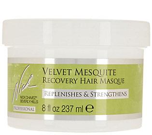 Velvet Mesquite Recovery Hair Masque from Nick Chavez nourishes and replenishes the hair. It offers intensive nourishment and smoothness with amazing shine. Excellent for dried-out, chemically treated hair, the formula includes Nick's signature ingredient, Velvet Mesquite, which provides the ultimate moisture and hydration to hair. How do I use it: Shampoo first, then apply masque evenly through damp hair. Leave on five to 15 minutes. Rinse thoroughly. Use weekly. Great for curly hair. From Nick Chavez. ...