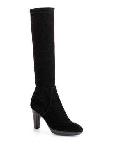 One of Aquatalia's most sought-after styles, this sleek, stacked-heel boot is expertly made in Italy from weatherproofed stretch suede and fitted with a slip-resistant rubber sole. The shapely sihouette is true to you, and the fit is eased with a partial zip at the inner leg. Color(s): anthracite suede, black suede, charcoal suede, espresso suede, navy suede, plum suede, taupe suede, wine suede. Brand: Aquatalia by Marvin K. Style Name: Aquatalia by Marvin K 'Rhumba' Boot. Style Number: 552459.