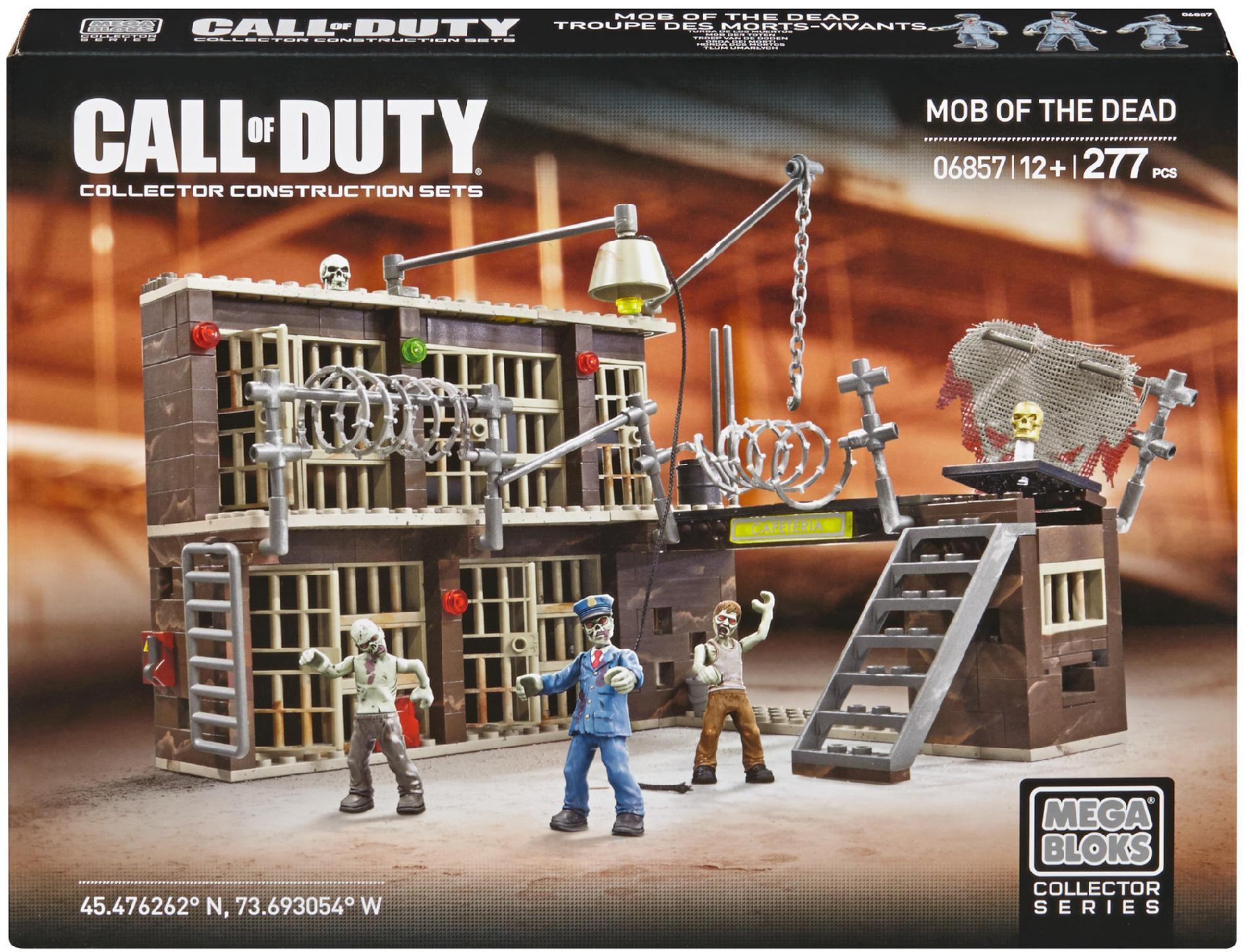 Mega Bloks Call Of Duty Mob of the Dead Alcatraz:Buildable Alcatraz prison 13"L x 11"W x 7"H with prison cells and staircase3 zombie micro action figures, including a new zombie guard micro action figureDetailed accessories include barbed wire, chains and skulls277 pieces