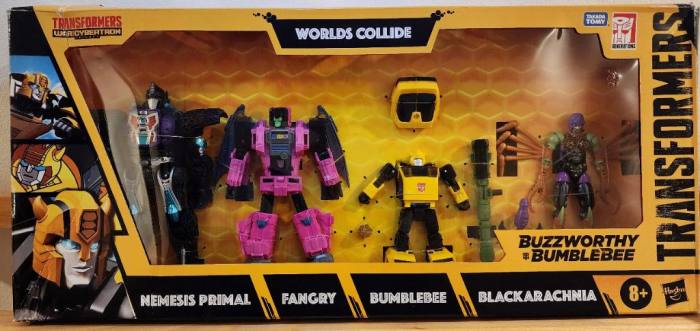 Buzzwothy Bumblebee contains: Nemesis Primal, Fangry, Bumblebee, & Black Arachnia