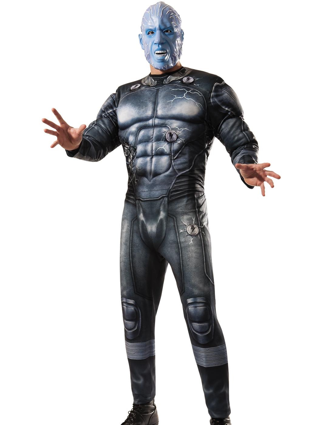 Electrify your enemies dressed as this incredible supervillain! Featuring a bodysuit and a character mask, you can quickly transform into Electro and light-up the night with your terrifying powers! Costume features:Padded muscle chest jumpsuitMask