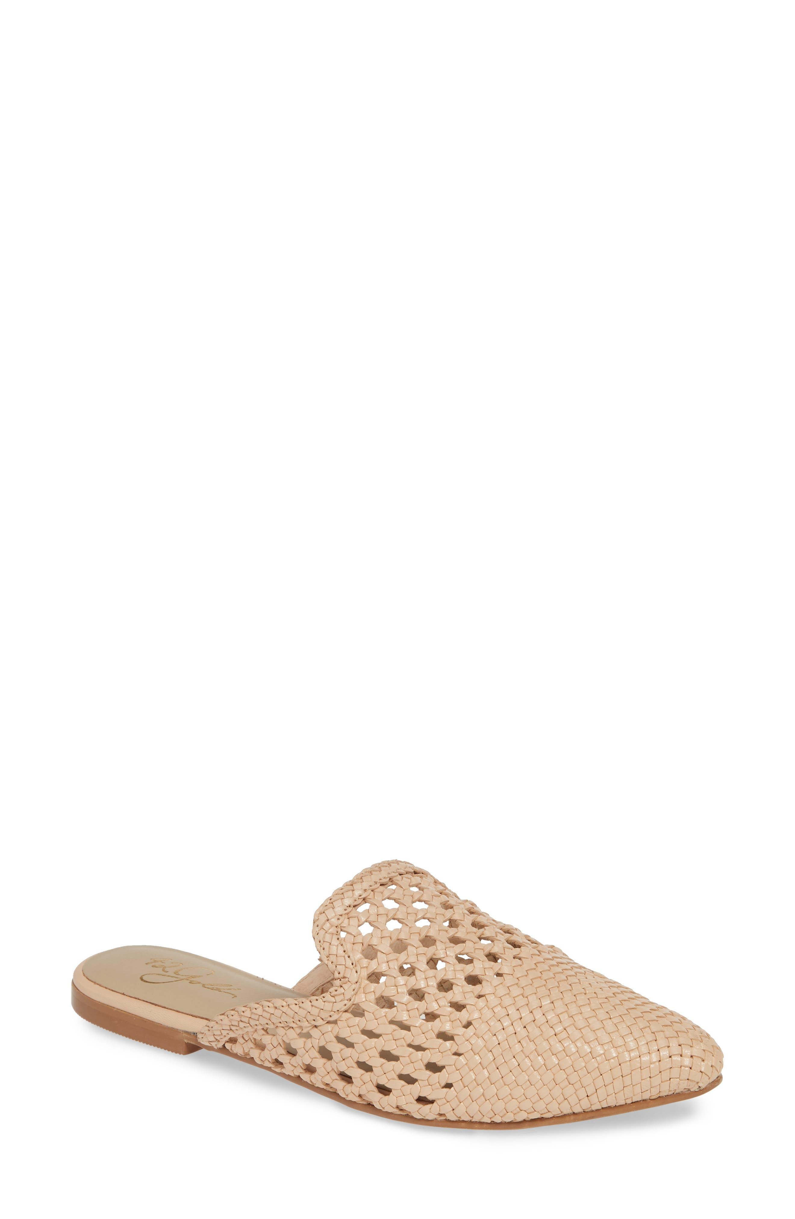 A loafer-inspired pointy-toe mule brings a relaxed look to warm-weather days with a breezy woven upper and barely there heel. Style Name:42 Gold Corra Woven Loafer Mule (Women). Style Number: 5774663. Available in stores.