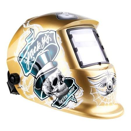 Sanheshun Pro Solar Powered Auto Darkening Arc Welding Helmet Skull Spider Web on Champagne