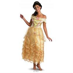 Web exclusive! Transform into the brave heroine Belle with this stunning costume. You're sure to capture the heart of princes and beasts alike in this Disney Princess Belle Deluxe Costume. A dazzling floor-length golden dress is accented with a petticoat, pink rosettes and a matching golden headpiece. Sweep across the dance floor in this spectacular Belle costume. Yellow Includes: top, pants, headpiece This is an officially licensed © Disney costume Imported