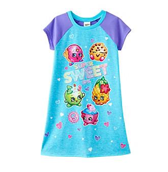 X This short raglan sleeved sleep gown from Shopkins features a "super sweet" front characters graphic design. Polyester Crew neck Raglan short sleeves "Super sweet SPK" front text with character graphics Imported
