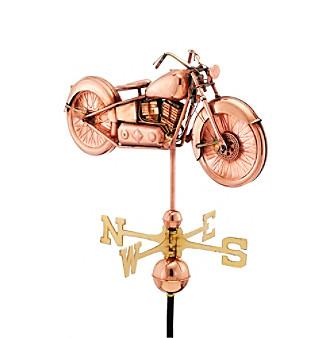 The perfect combination of technology, craftsmanship, and American heritage, this vintage motorcycle is ready to race over the rooftop of your house, barn, garage, or cupola. This polished copper weathervane makes a great gift for motorcycle enthusiasts or display it in your own home. Set includes: Motorcycle Weathervane Materials: Copper Finish: Polished Dimensions: 18 inches high x 26 inches wide x 18 inches long Weight: 18 pounds To be used with Overstock item #15945313