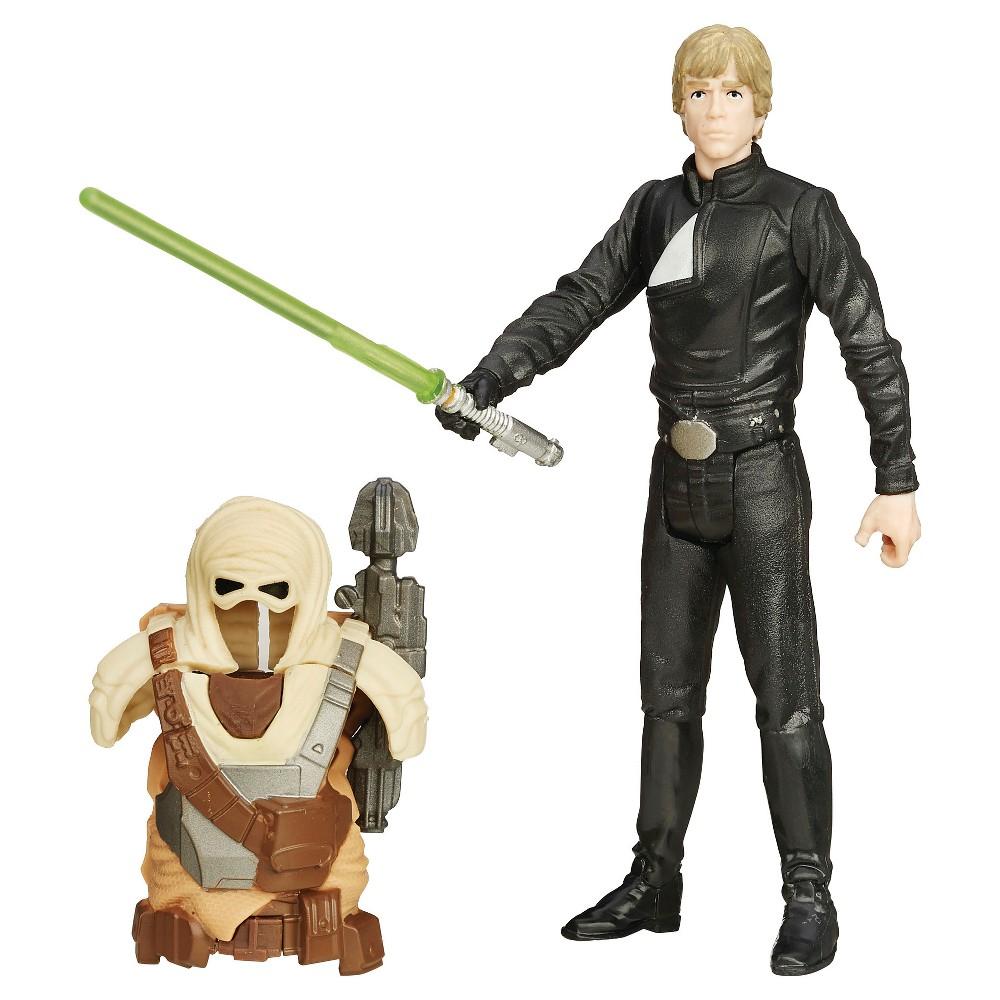 Enter the world of Star Wars and launch into action and adventure! Convinced he can turn his father away from the dark side of the Force, Luke Skywalker surrenders to Darth Vader and is brought before the Emperor. This Luke Skywalker figure includes Desert Mission-themed armor and an additional accessory. Discover exciting stories of good versus evil in a universe of heroes, villains, and aliens with Star Wars Desert Mission Armor Packs. Each sold separately.