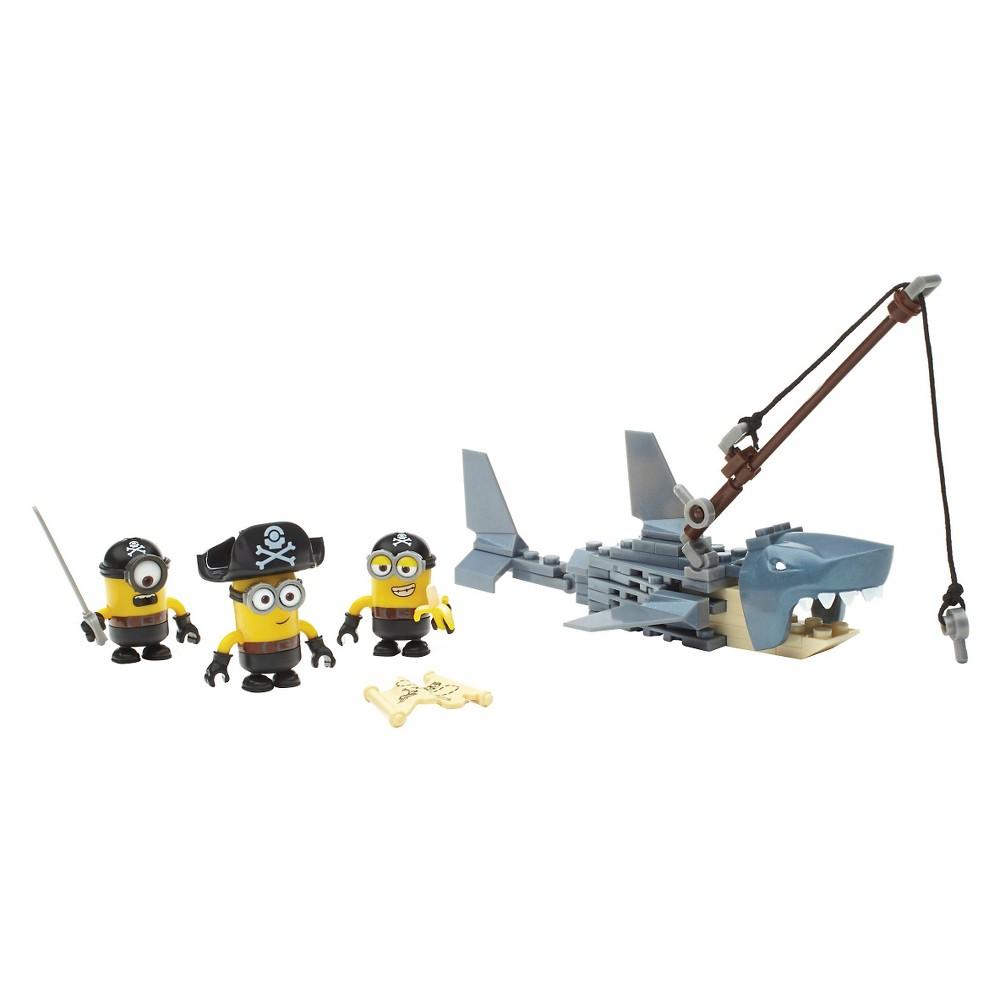 .Minions and a great white shark – what could possibly go wrong? After casting their lines, these three Minion pirates have just fished up more than they expected, turning them into Shark Bait by Mega Bloks Minions™. You can build the shark with its moveable tail and opening jaw. If a Minion gets too close, the other two can use the fishing rod to reel him back to safety! Distract the shark by tossing him a banana to keep his appetite at bay. The Minions come with interchangeable parts an...