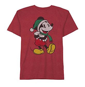 X Showcase your holiday flair with this Mickey Mouse graphic tee from Hybrid. . Featured in heathered red Crew neck Short sleeves Print graphic at front Machine washable Cotton / polyester Imported