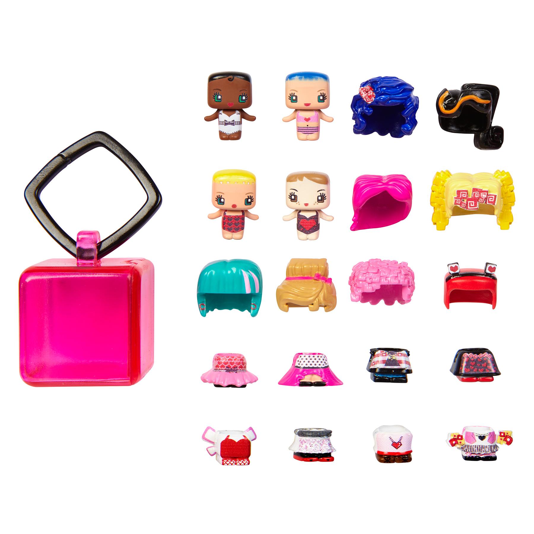 Love is in the air and in this adorable small figure fashion pack! Four special My Mini MixieQ's????characters come ready to dress up in a variety of friendly romance and sweetheart themed Pop and Swap????hair and outfits! Choose to wear red hearts, or polka dots, pink hair and more. The set includes 8 hair and 8 outfits for tons of fashion fun. The pack also comes with a Carry Cube to wear, share and show off your ideal character! Check out the full series of My Mini MixieQ's????at play.mymini